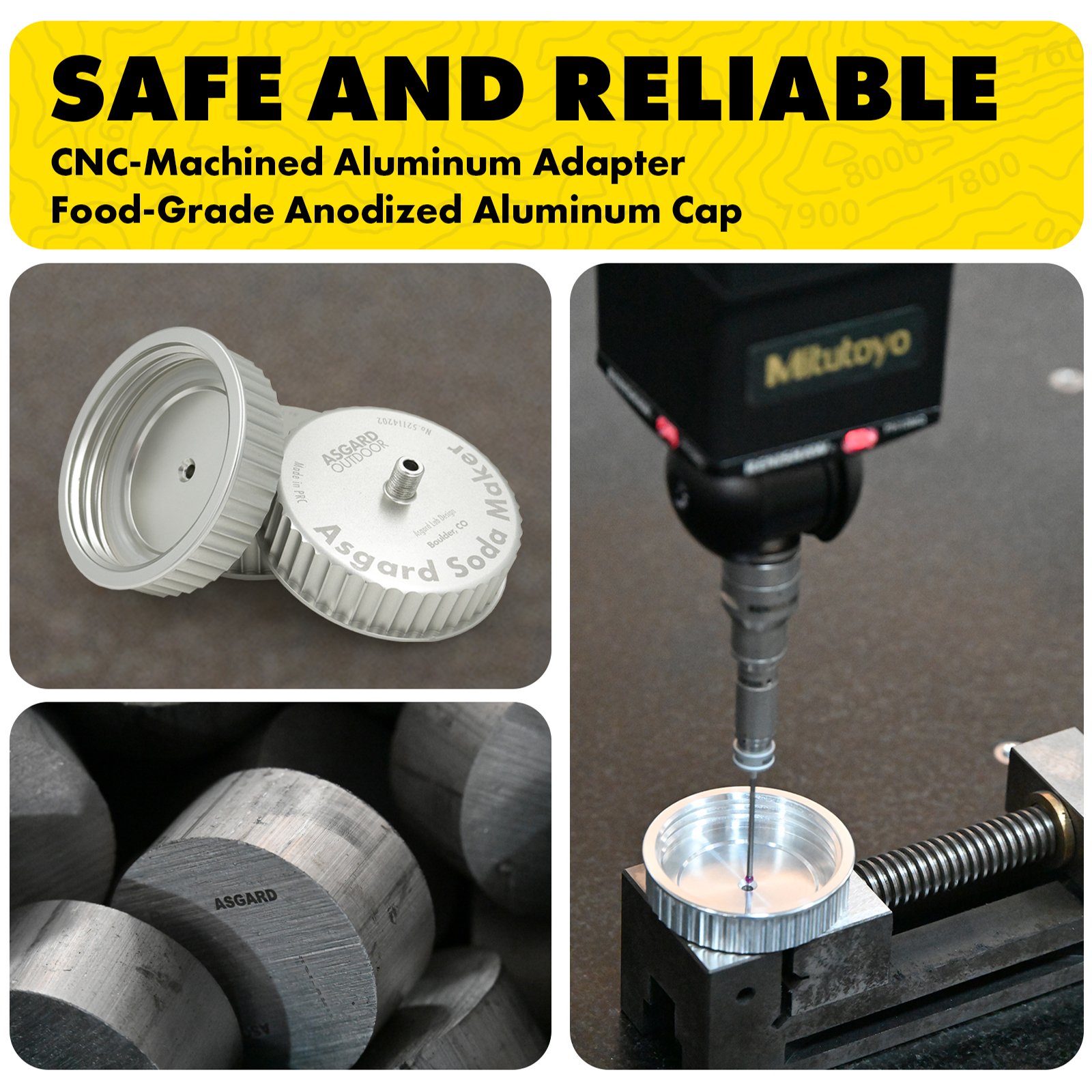 The Asgard Soda Maker is engineered for outdoor enthusiasts who demand both performance and portability. Weighing only 2.8 oz, this soda maker fits perfectly with standard Nalgene wide-mouth bottles, delivering sparkling water or soda in just 3 seconds. Constructed from food-grade anodized aluminum with a CNC-machined adapter, it withstands the rigors of hiking, camping, or overlanding.