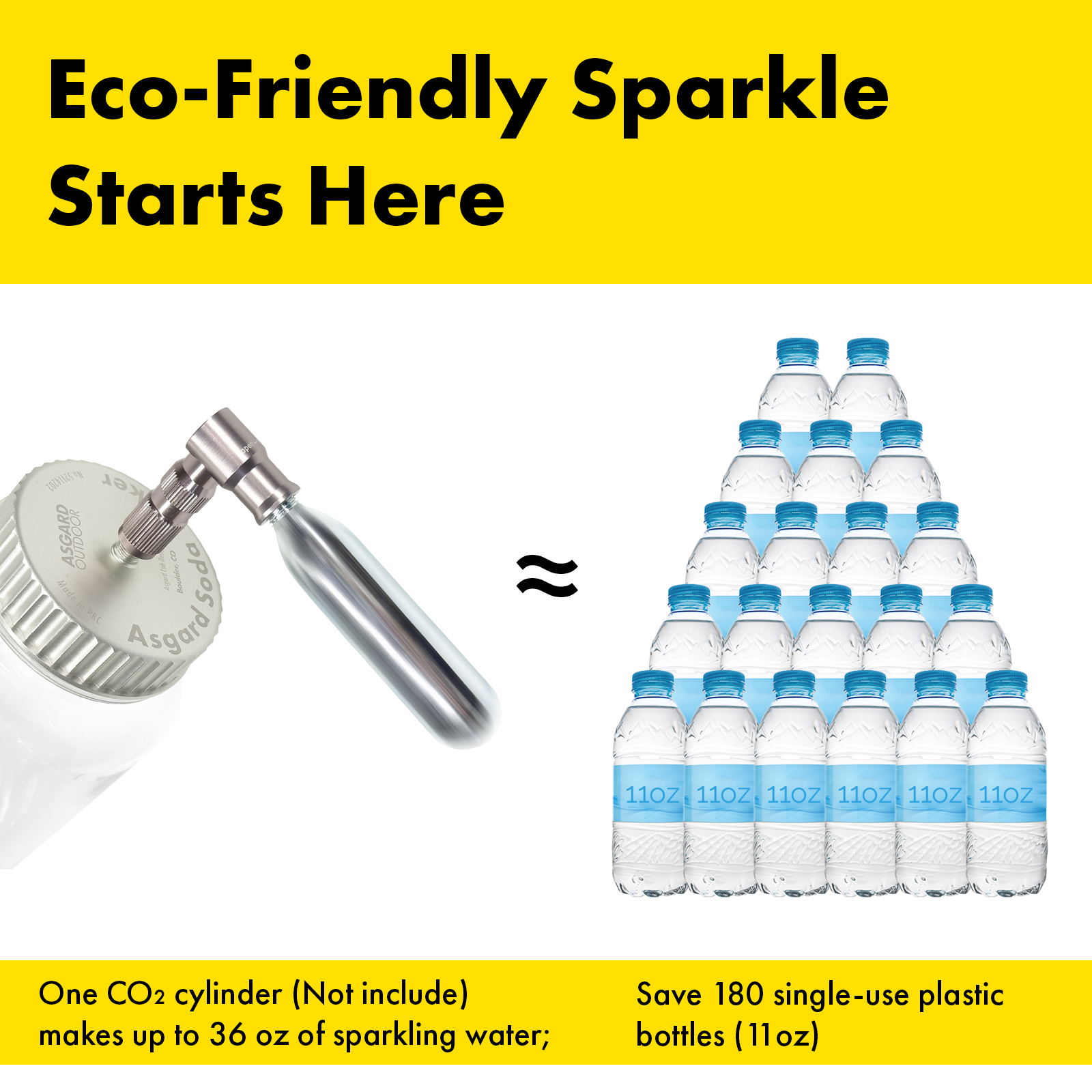Eco-friendly sparkle device with CO2 cylinder and stack of plastic bottles