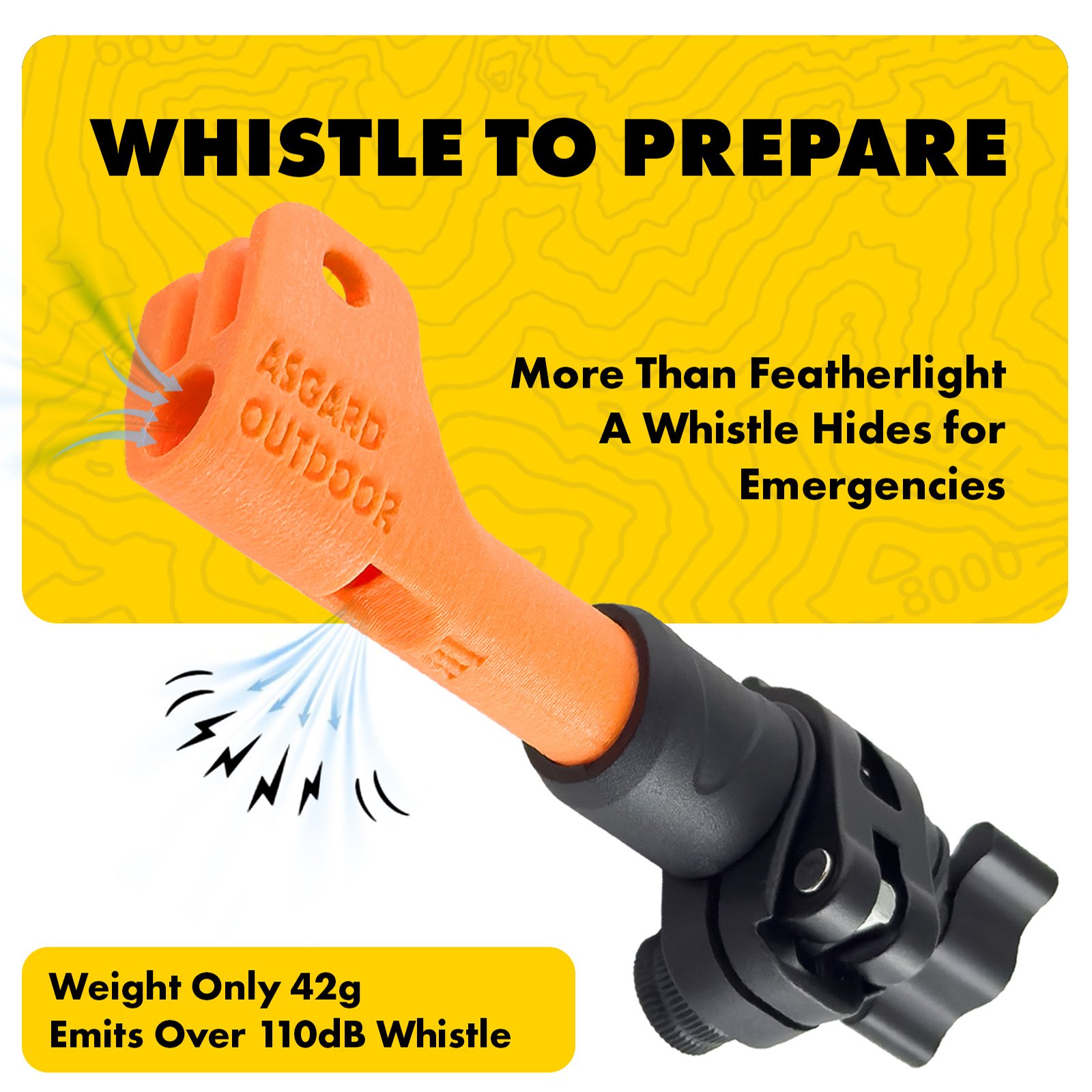A: VersaMount Lite includes a built-in survival whistle for audible alerts.