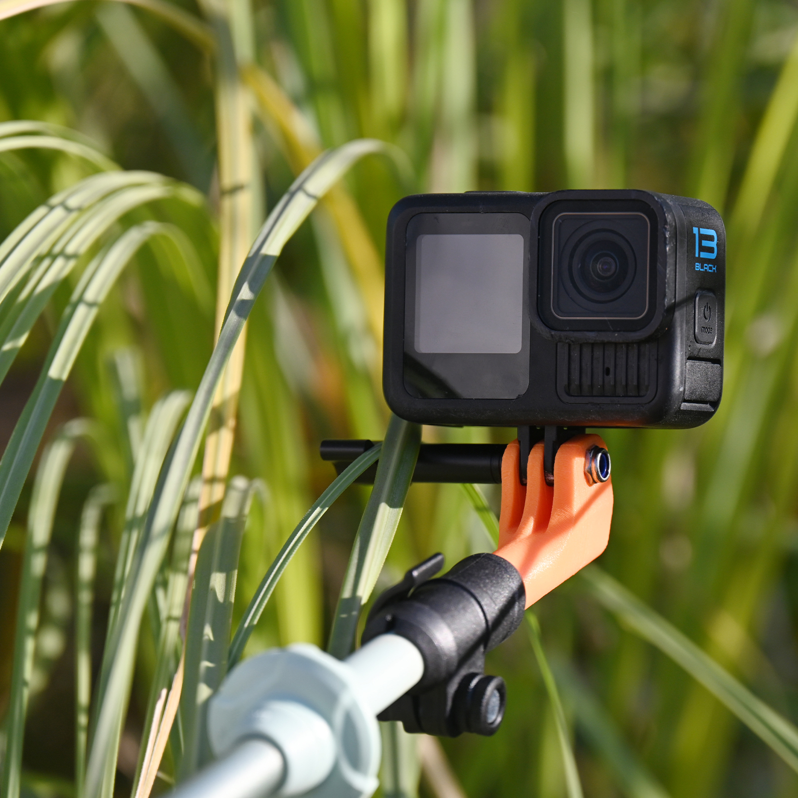A: Clip VersaMount Lite onto your pole, lock it, and film. It is designed to turn your pole into a filming handle fast.