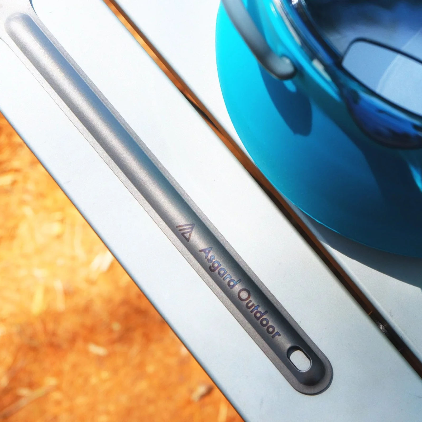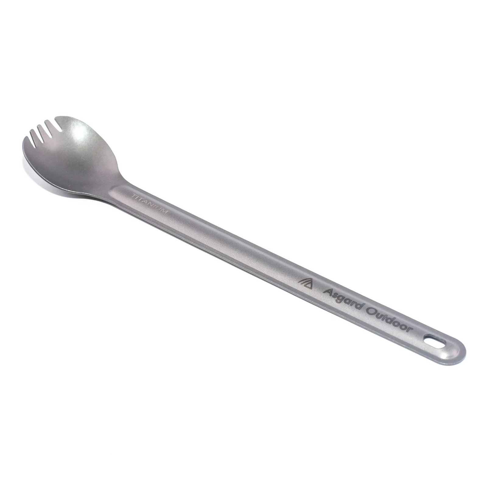You never want to start your trip without it. The spoon fork is made of high-grade and almost pure titanium with a laser engraved mark on it.